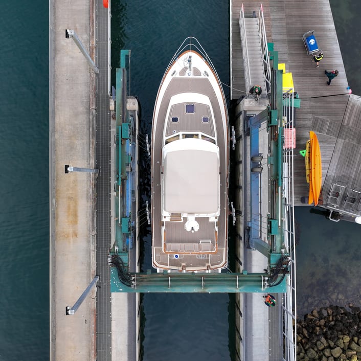 At Portland we can lift boats up to 22m long and 5.5m wide. Our fully serviced yard has everything you need to keep your at its best, with a dedicated blast bay, mast storage and electricity and water throughout.